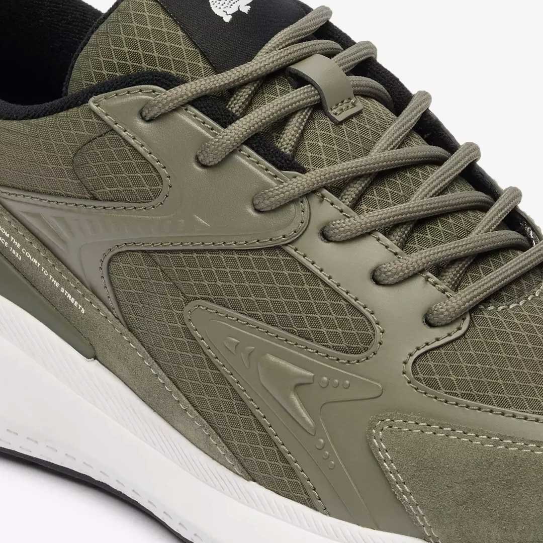 - Step into a world where style meets sustainability with Lacoste’s L003 EVO Trainers. The upper is crafted from a recycled polyester blend, offering both style and durability. Featuring 100% polyester lining ensuring maximum comfort, while the Recycled Seedpearl Ortholite footbed provides cushioning and support. With a rubber and EVA blend outsole, these sneakers offer stability for all-day wear. The round toe and lace-up fastening ensure a secure fit, while the heel tab adds a hint of convenience. Featuring branding on the side and insole showcasing the iconic Lacoste logo, representing the brand’s esteemed heritage and impeccable craftsmanship.Designed in a classic colour, featuring the iconic crocodile motif on the tongue and added suede accents, these shoes exude a touch of sophistication. Whether you are having a leisurely stroll or enjoying a casual weekend getaway, the Lacoste L003 EVO Trainers are perfect for any occasion.Refer to care instructions Composition: Upper: 51% Recycled Polyester, 22% Polyurethane, 27% Suede; Lining: 100% Polyester; Outsole: 37% Rubber, 56% EVA, 7% Thermoplastic Polyurethane.