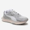 Youth culture meets mobility in the Wild Rider. This silhouette brings a whole new dimension to the Rider family, with fresh layers of material and a raw, edgy look. Its design is inspired by the movement and motion of city life – always going forward, further, faster, and beyond. This pack features a nylon upper with suede overlays and a leather formstripe.